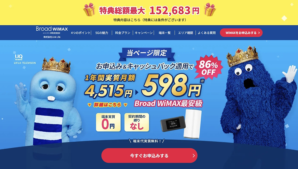 当サイト経由限定で期間限定で特典総額最大152,683円!
