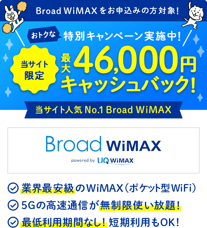 実質月額が最安値!一番お得なWiMAXがBroadWiMAXです!